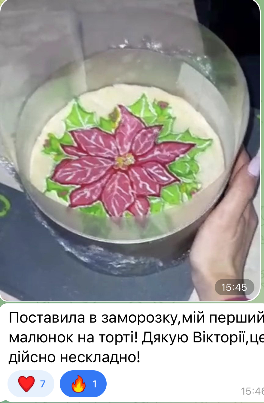 Окремим відео розповідається як з будь-якого зображення зробити заготовку для бісквіту, підігнати по формату через безкоштовний додаток у звичайному телефоні.